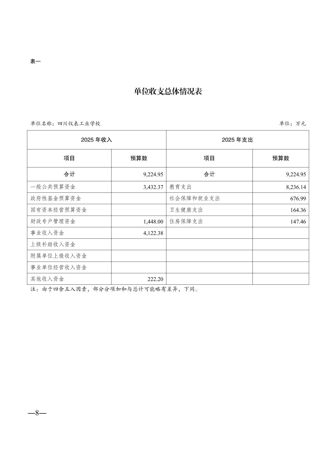 四川仪表工业学校2025年单位预算情况说明